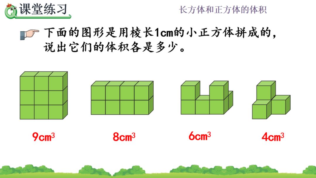 1.下面的图形都是用体积为1 cm3的小正方体拼成的,它们的体积各是多少?