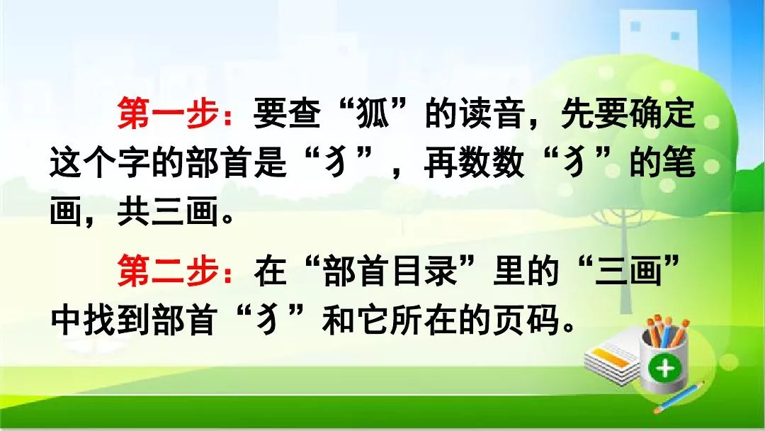 第一步要先查不认识的字的读音,先确定这个字的部首是什么,再数部首的笔画数。