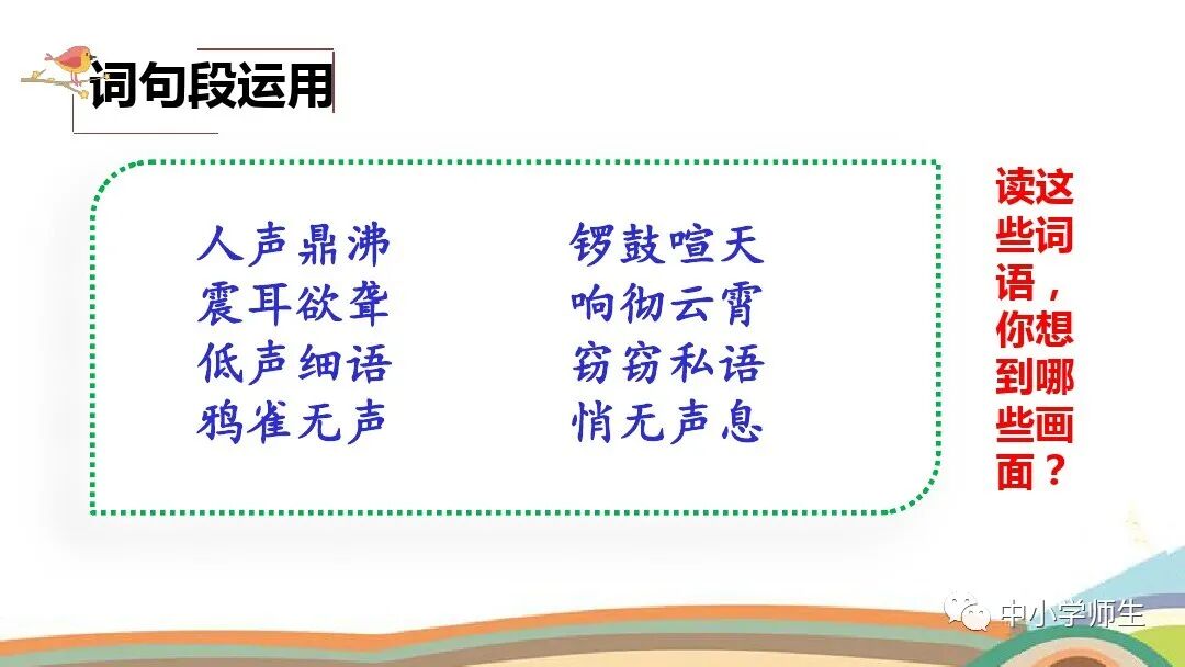 人声鼎沸→万籁俱寂、平静→喧闹、