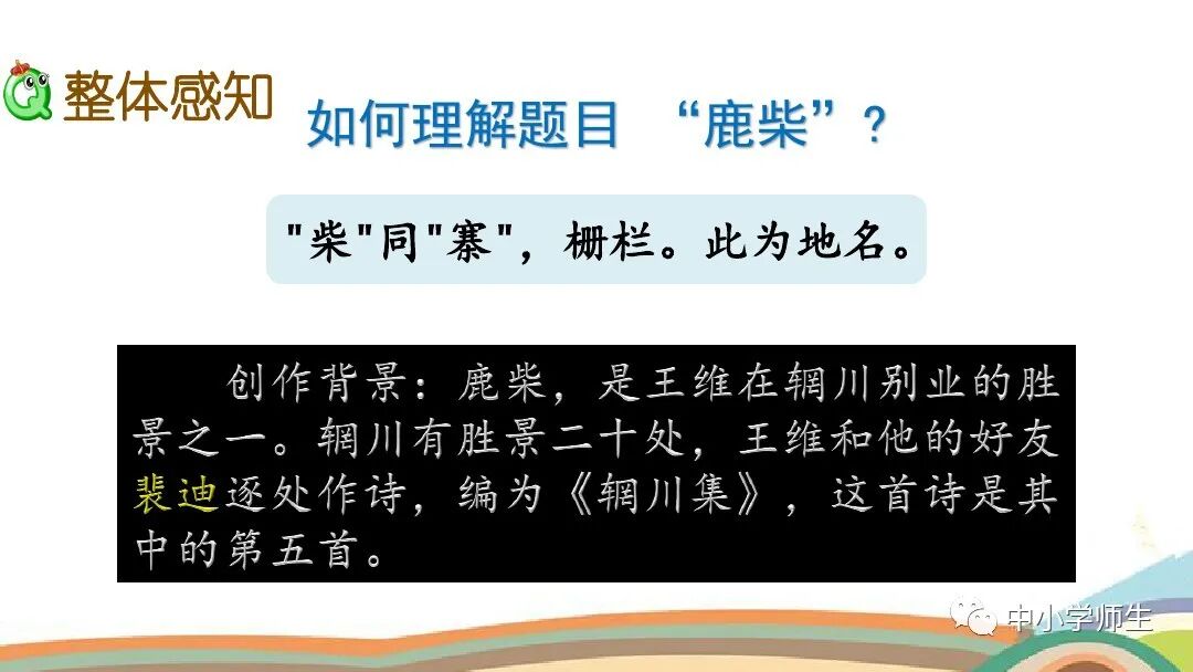 ①鹿柴(zhài):“柴”同“寨“,栅栏。此为地名,王维辋川别墅之一(在今陕西省蓝田县西南)。