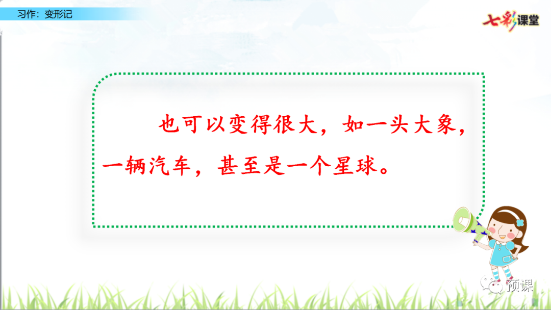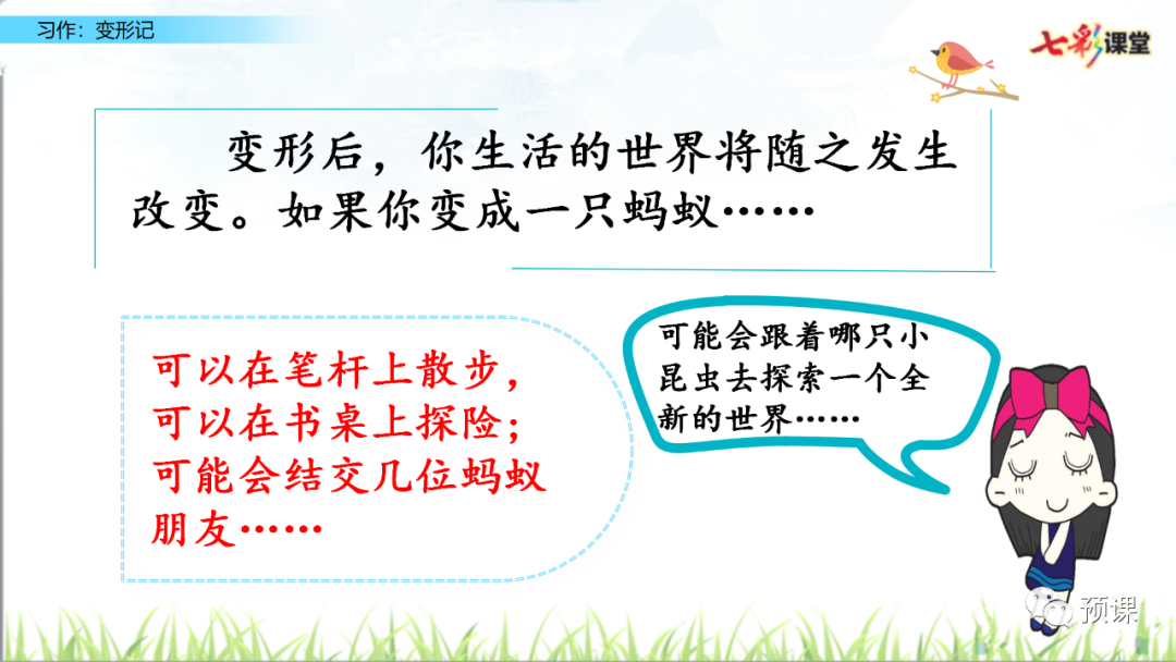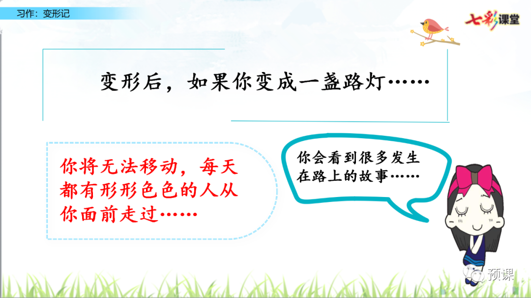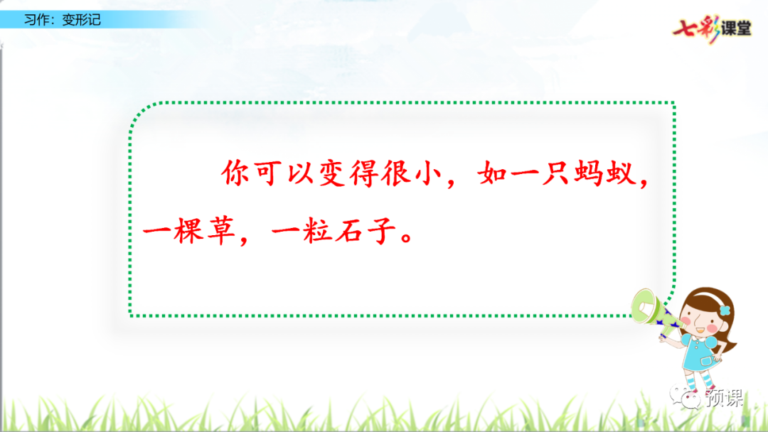 本次习作的重点是运用联想和想象,写出变形世界的奇趣。