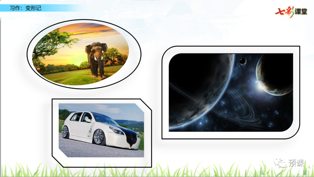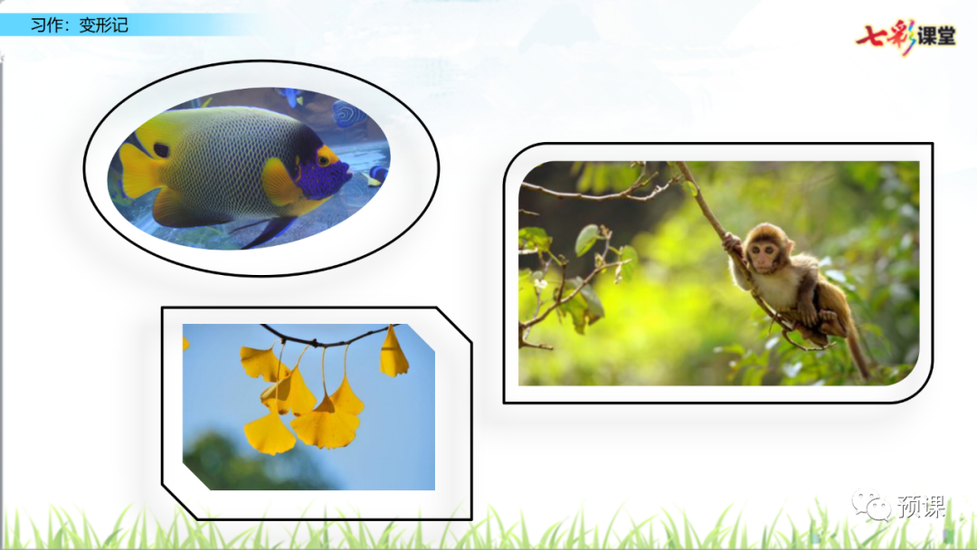 (1)变形的事物必须是自己熟知的,要根据已有的特点展开联想和想象哦!注意要运用联想的手段:相似联想、相关联想、相反联想。