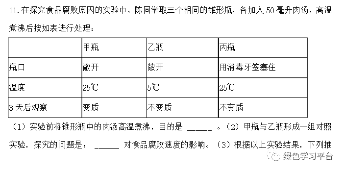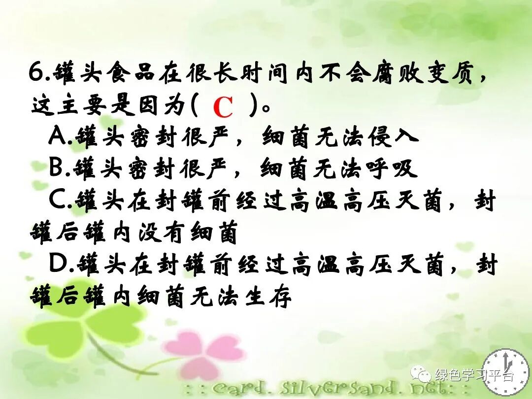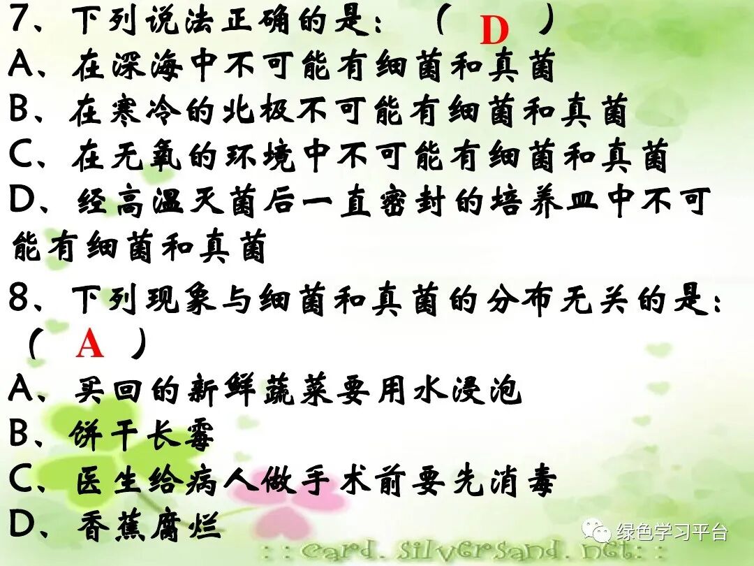 4、经过高温灭菌处理并密封的环境以及真空中不可能有细菌和真菌。在这个探究中,若灭菌彻底且灭菌后保持密封状态,是有这种情况存在的。