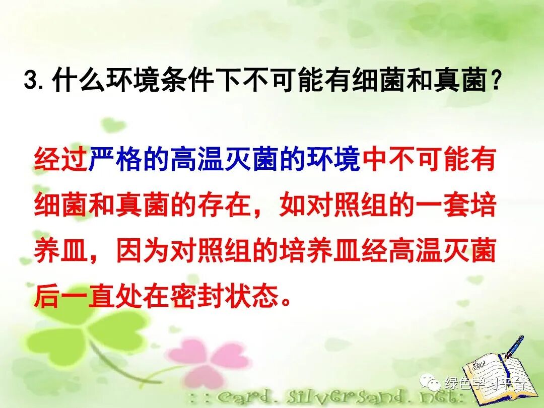 1、在实验前不要盲目打开培养皿,使它们保持密封状态的目的是防止环境中的细菌或真菌的孢子等落在培养基上。选取两套培养皿的目的是进行对照。一组不做处理,为对照组,另一套在选择的环境中处理,为实验组。
