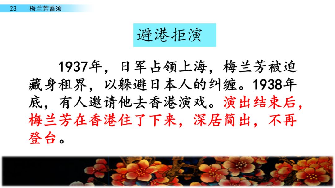 答:1937年,日军占领上海,梅兰芳不愿给日本人演戏,为躲避纠缠,他先是藏身上海租界,然后去了香港。1941年香港沦陷,日本人多次逼迫,梅兰芳难以抵抗来自侵略者随时随地的骚扰,拒绝的借口都用尽了,最后只能蓄须明志,表示对日本帝国主义的抗议,表明不给侵略者演戏的决。