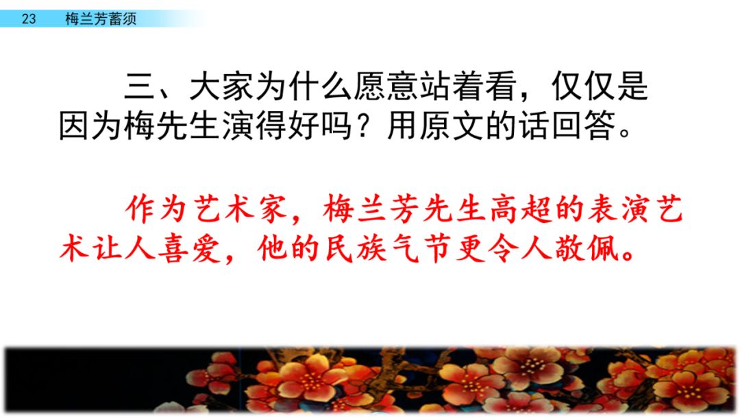三、1.无论 都 2.梅先生,您何必卖房子,只要您把胡子一剃,一登台,不愁没钱花。3.具有深深的爱国之心以及对侵略者的憎恨
