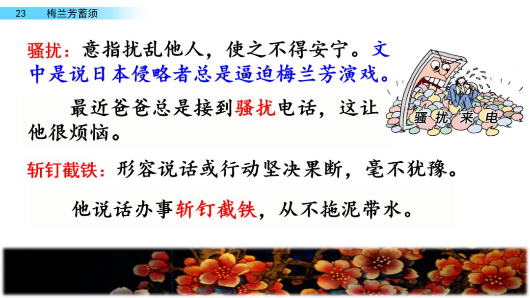 骚扰:使不安宁;扰乱。