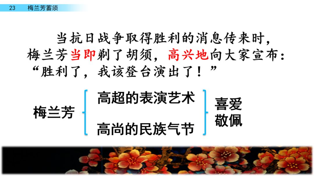 2.抗日战争取得胜利的消息传来 梅兰芳当天就剃了胡须 高兴地向大家宣布 胜利了 我该登台演出了 (在句子的空白处加标点)