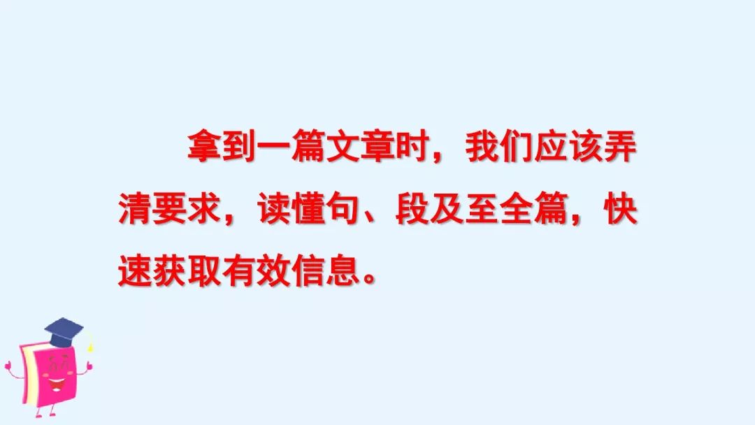 阅读方法:这篇文章可以和本单元的其他几篇文章进行对比阅读。从内容、题材、写作方法、主题思想等几个方面比较它们的异同,从而让学生明白保护环境、保护地球、保护生态平衡的重要性。