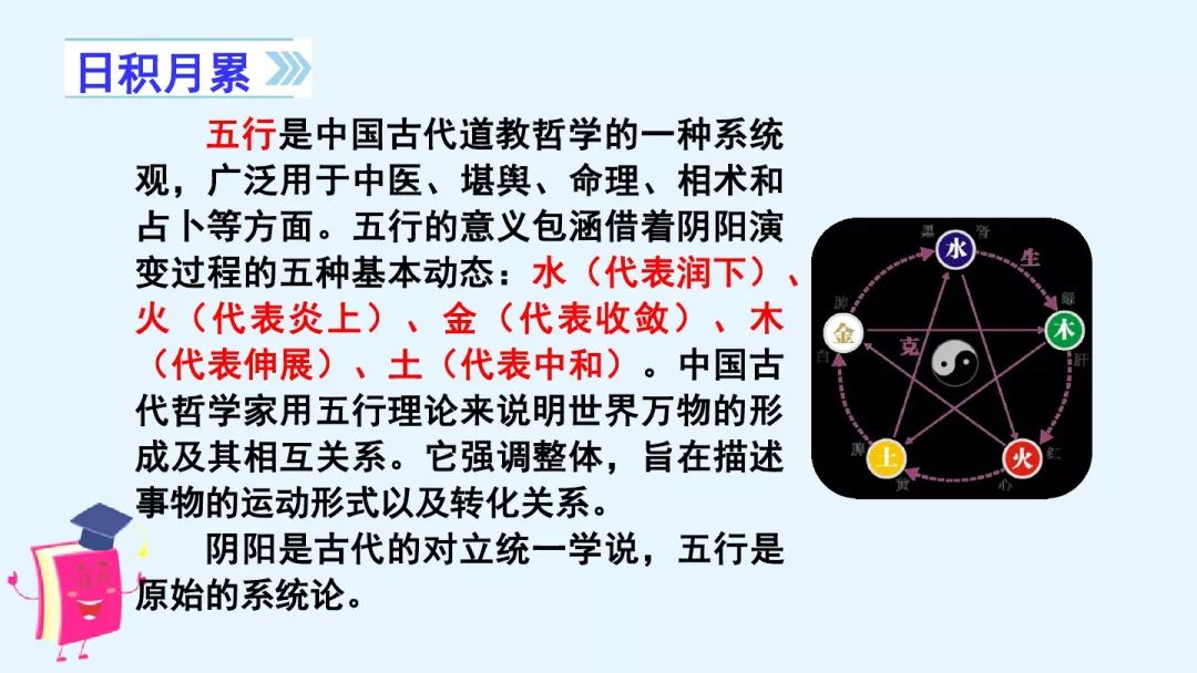 《少年闰土》中有这样一段描述:“我早听到闰土这名字,而且知道他和我仿佛年纪,闰月生的,五行缺土,所以他的父亲叫他闰土。”句中的“五行”指的是_____、_____、_____、_____、_____。你或你同学的名字里带有_____字,跟_____有关,由此推测有可能你或他的五行缺_____。