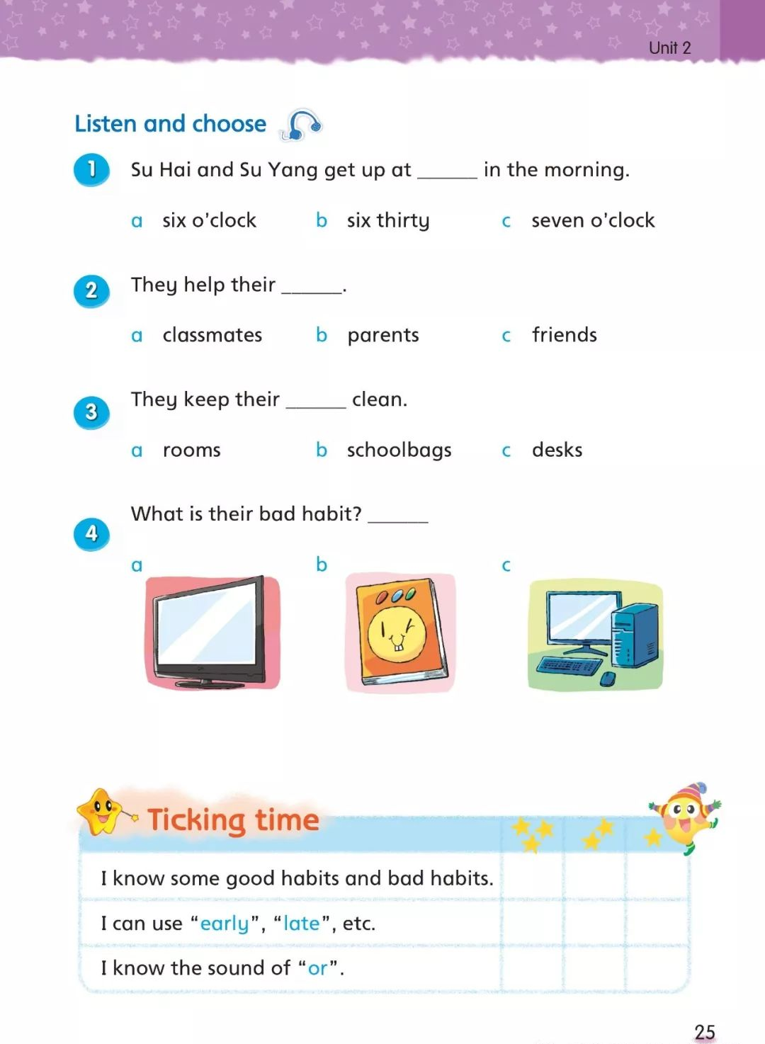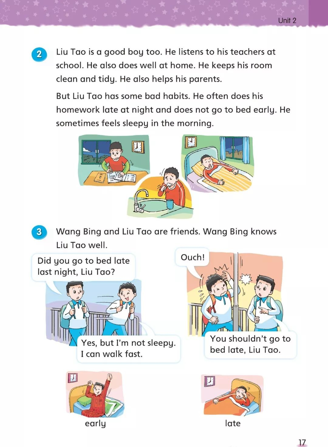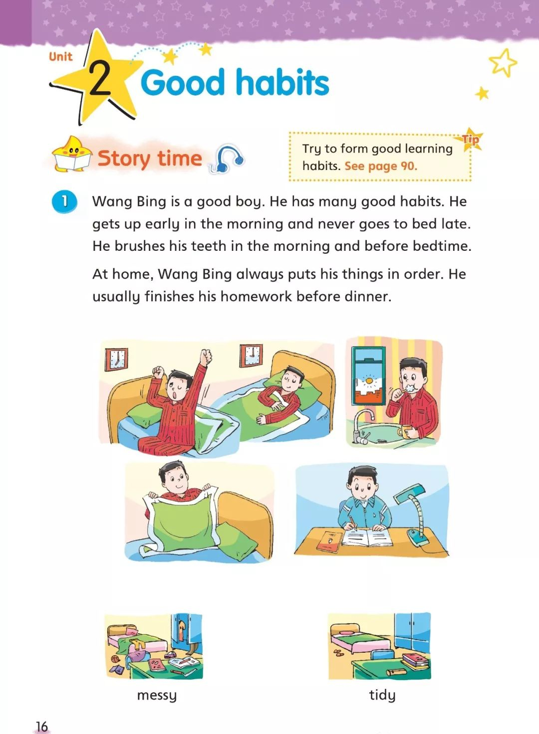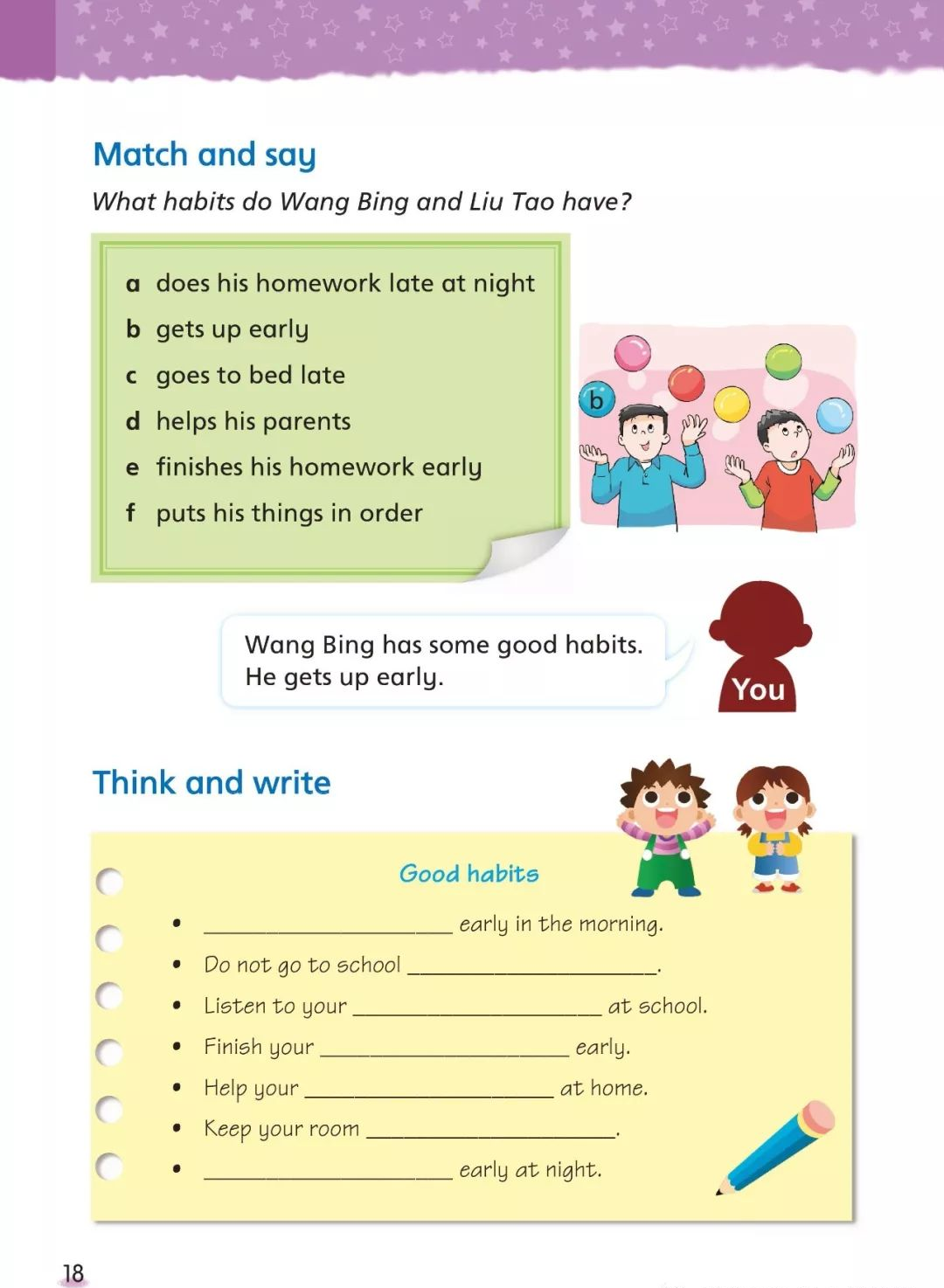 一、1. before 2. late 3. tidy 4. clean 5. good 6. sleepy 7. finishes 8. put 9. getting 10. habits