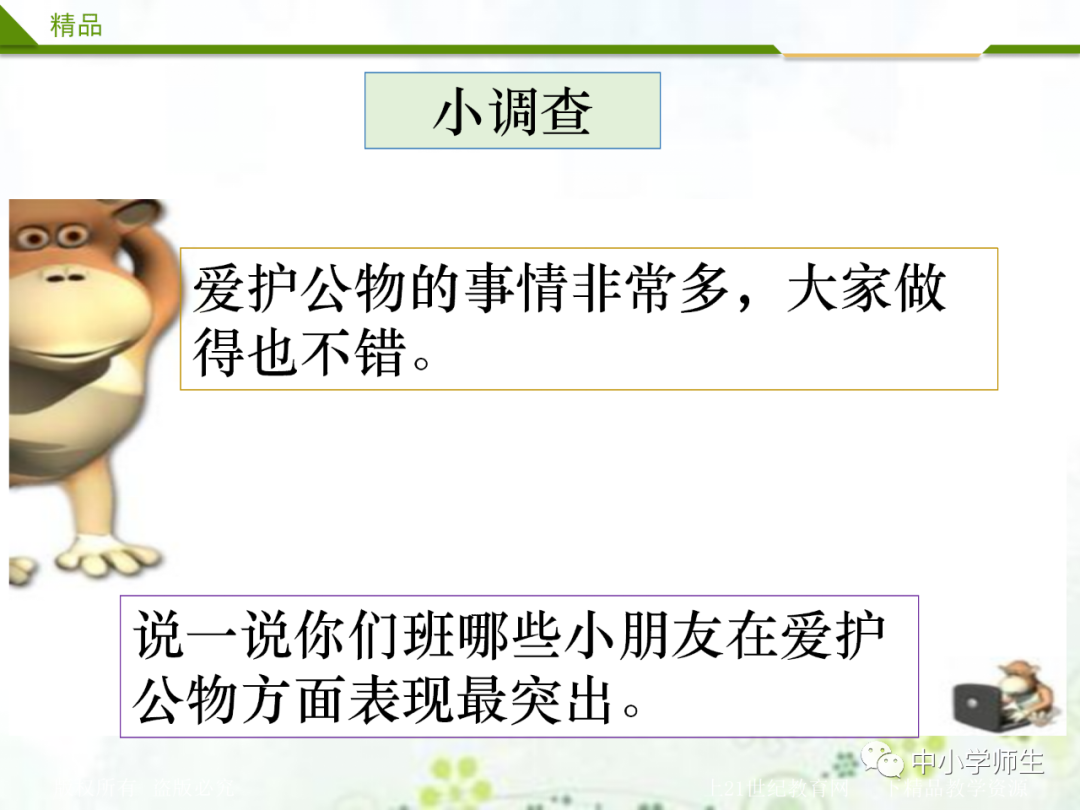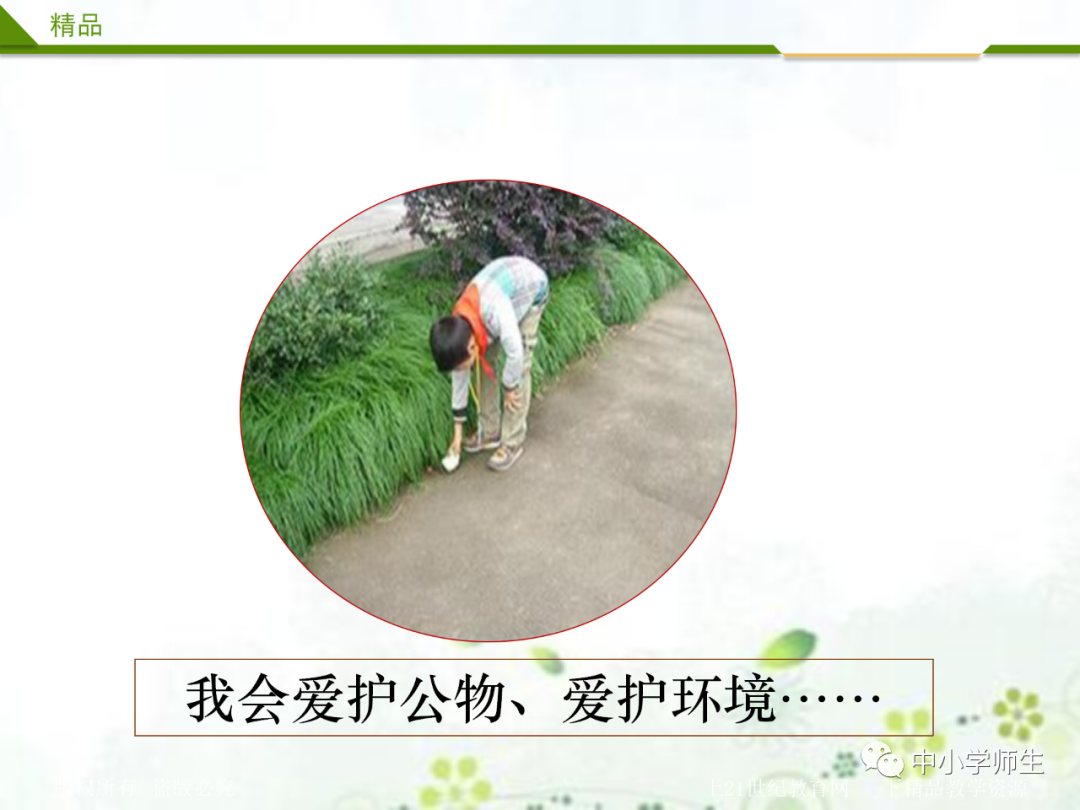 PPT出示图片。让孩子们评论书中的小朋友的做法好吗?我们还可以做些什么?一起行动吧!