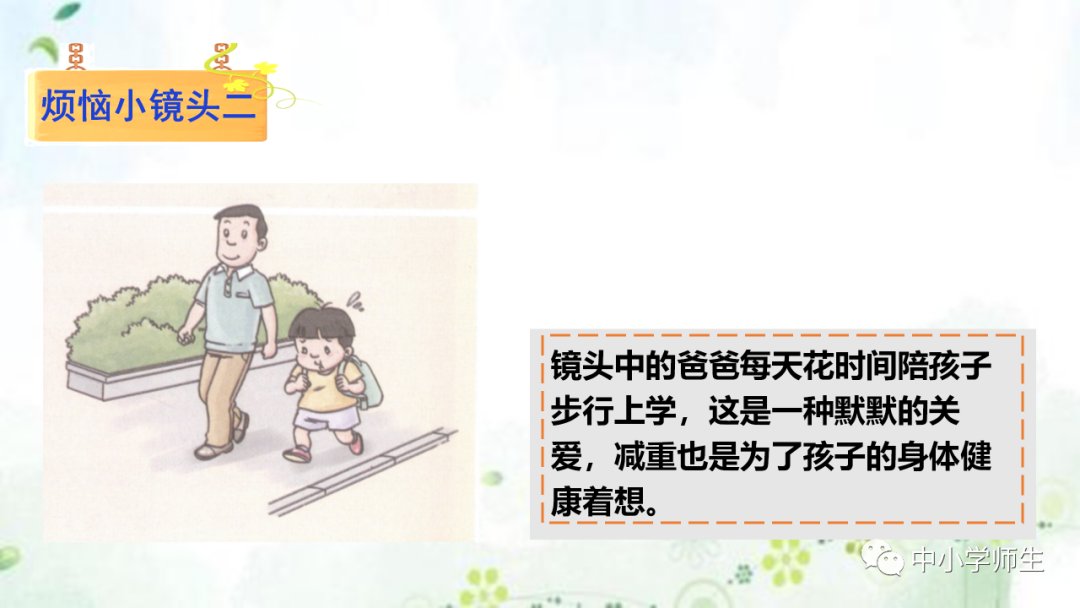 学生交流:为了让我减体重,爸爸每天和我一起步行到学校,我好累呀!