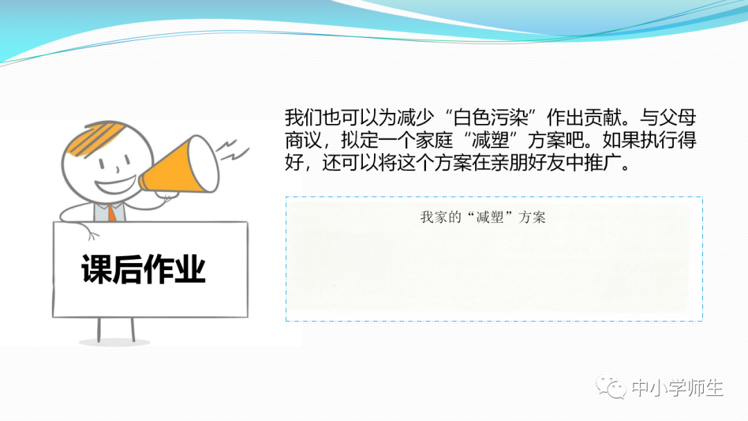 2、减少“白色污染”人人有责,与父母商议,拟定一个家庭“减塑”方案