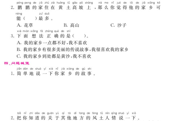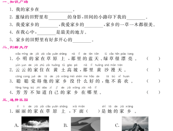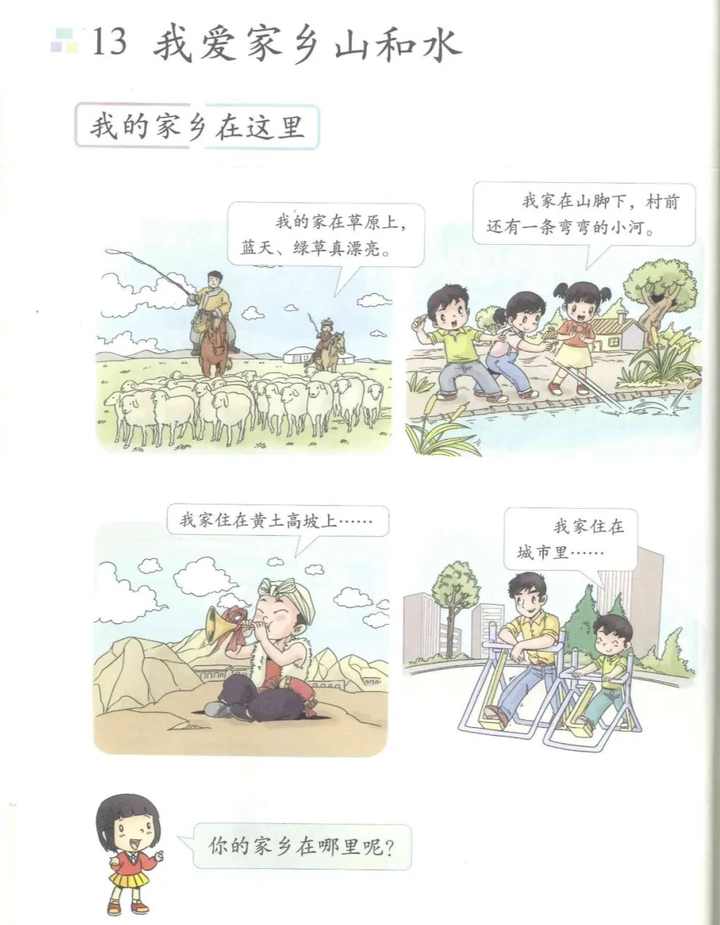 4.交流:自己生活的家乡在哪里?自己喜欢家乡的什么景色?