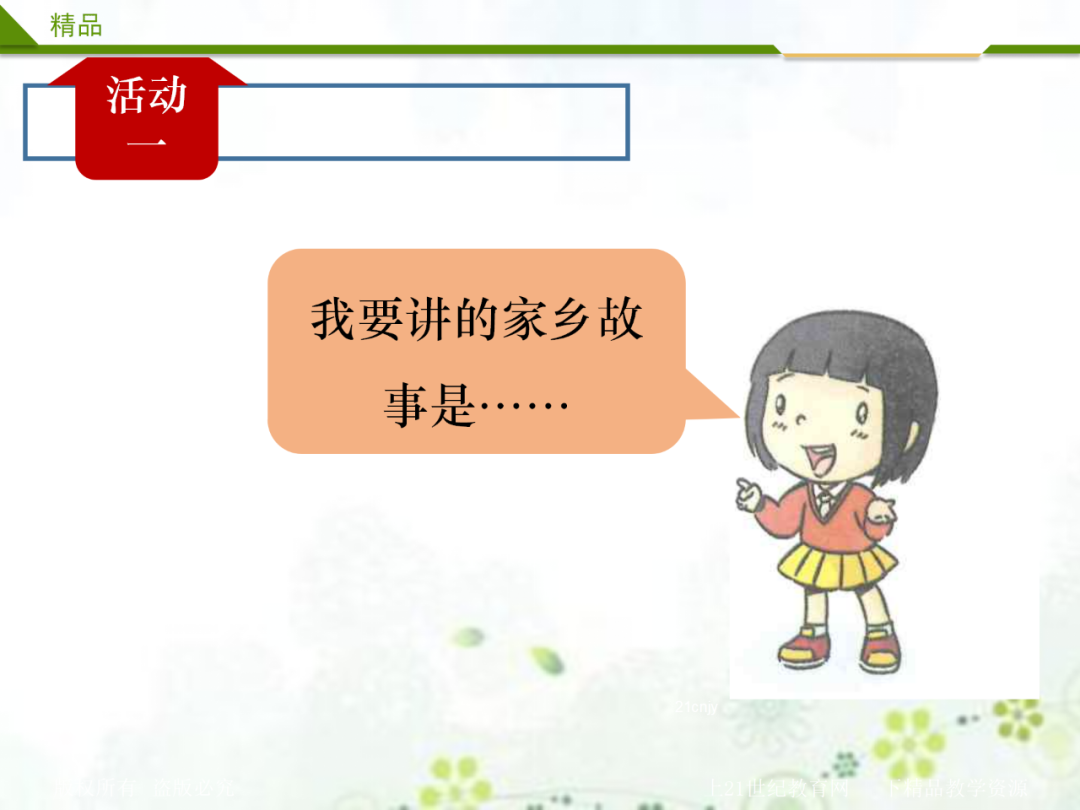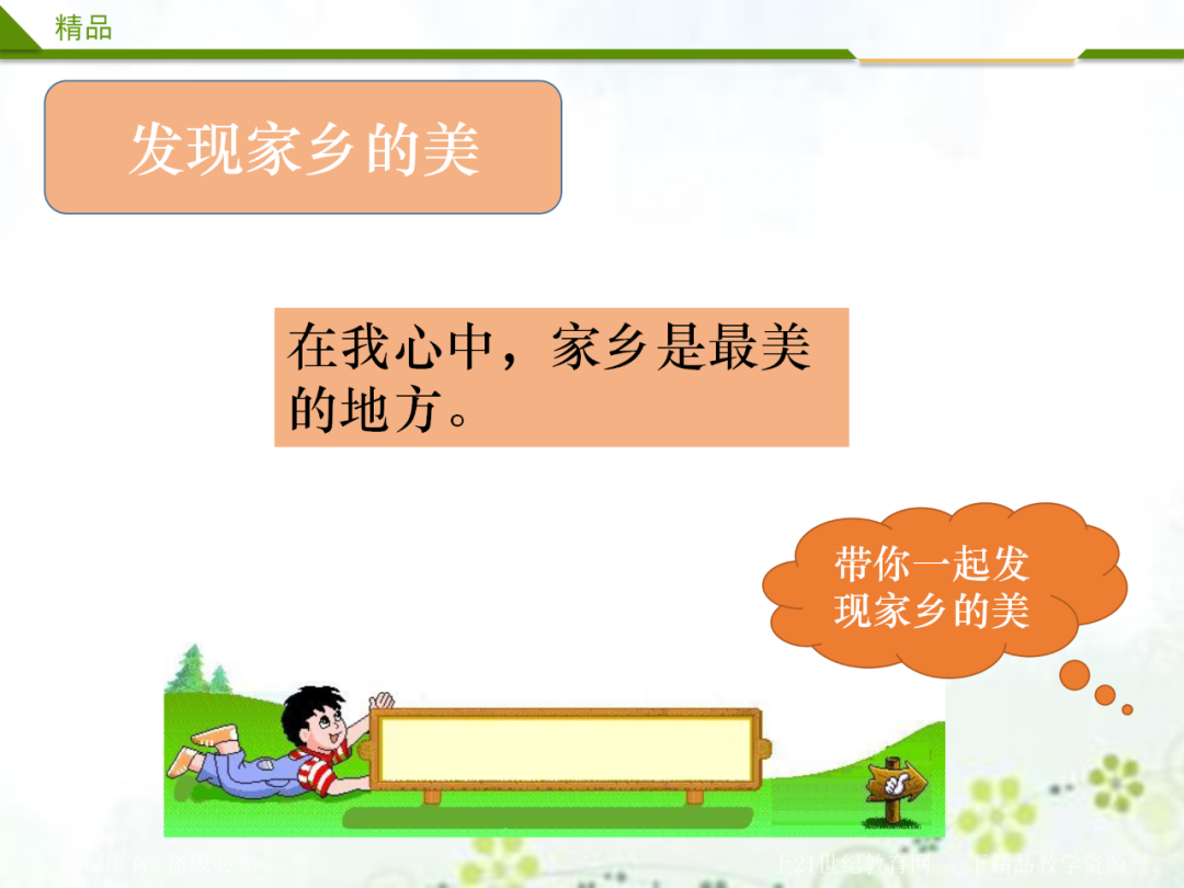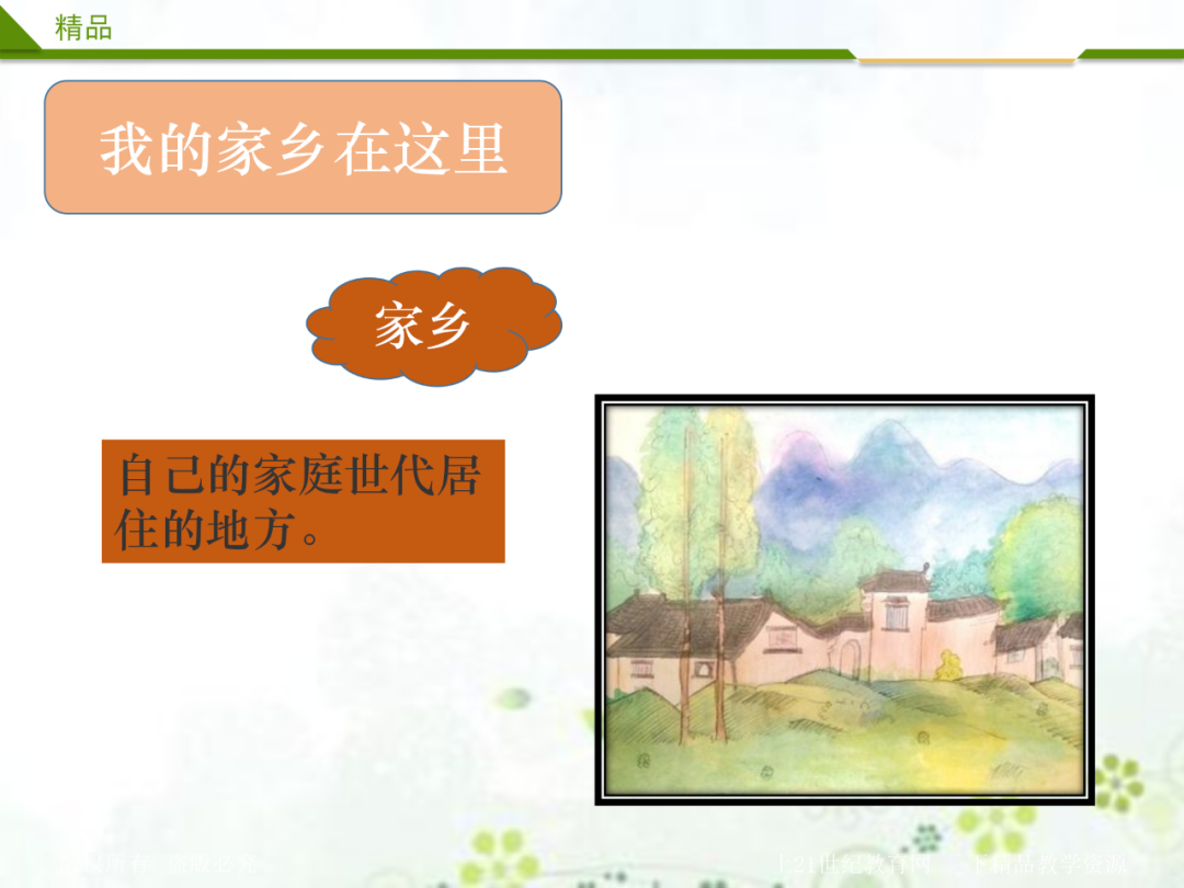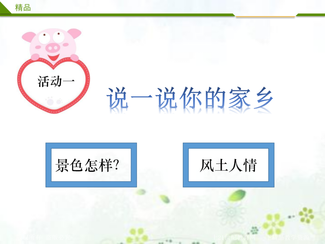1.了解自己家乡的自然环境和人文环境,激发热爱家乡的情感。