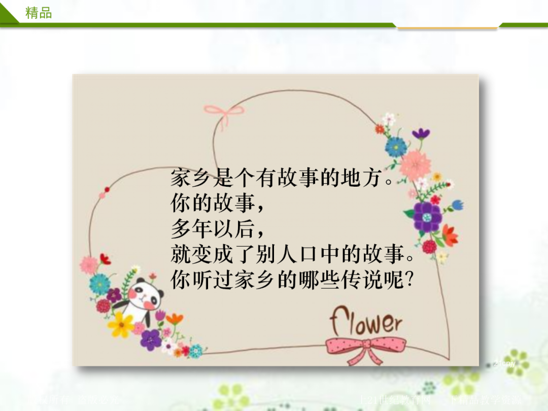 3、课前搜集家乡的相关资料:图片、故事、歌曲或戏曲等。