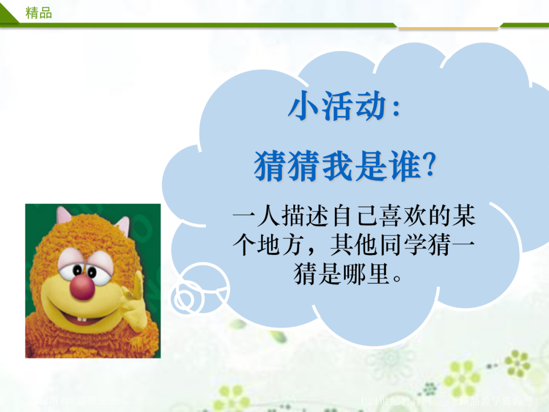 4.猜一猜,请同学描述他最喜欢的家乡的某个地方,其他同学猜猜是哪里。