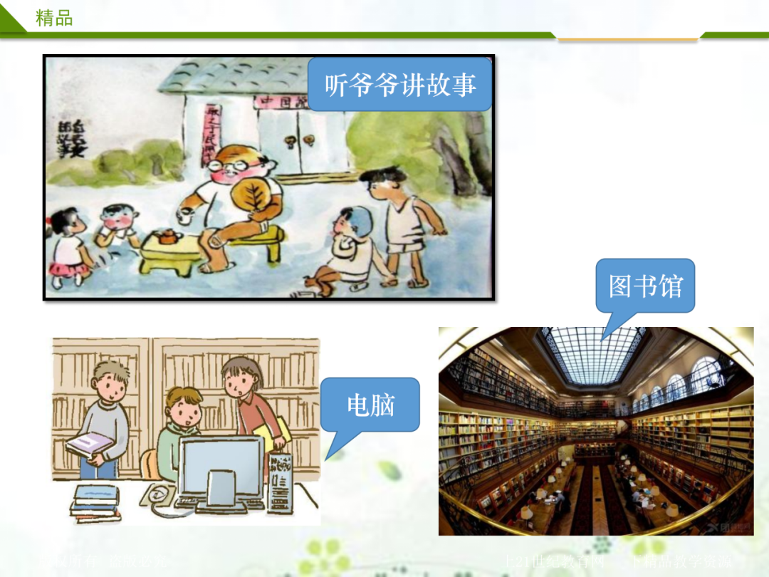 5.展示自己收集的关于家乡照片、文字等资料,并与同学交流是通过哪些渠道获得的资料。