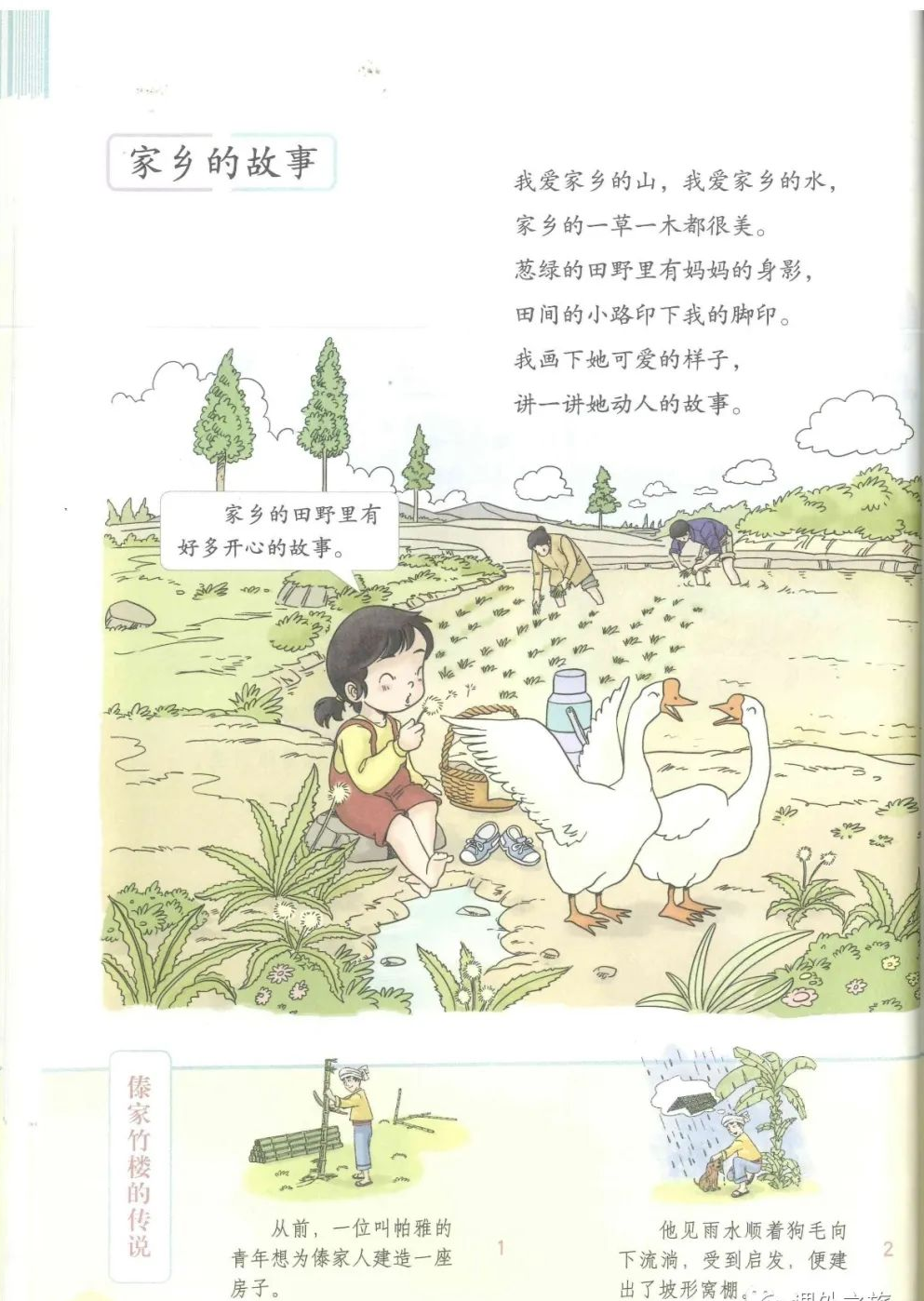 获取配套课件教案习题试卷请拉到文末微课讲解电子课本知识点1、在我心中,(家乡)是最美的地方。2、我的家乡在(云南),有(滇池)、(石林)、(抚仙湖)等美景。3、傣家竹楼,他见到雨水顺着(狗毛)向下流淌,便建出(坡形窝棚),从(凤凰)单脚独立的姿势得到启示,建造(竹楼)。图文讲解教学设计13《我爱家乡山和水》教学目标: 1.了解自己家乡的自然环境和人文环境,激发热爱家乡的情感。 2.能用画笔记录下自己眼中家乡的美景和自己对家乡的感受。 3.能运用观察、访问、调查资料等方式,了解家乡的故事和家乡的文化生活。教学准备:1.多媒体课件:《我的家乡》录象及相关的自然景观图片。2.学生准备图画纸和彩笔。3、课前搜集家乡的相关资料:图片、故事、歌曲或戏曲等。教学过程:活动一:我的家乡在这里。 一.看一看,说一说。 1.出示课件,指导学生欣赏《我的家乡》的录象。 2.说说从画面上,你看到了什么? 3.思考:课本中的小朋友喜欢家乡的什么 ?4.交流:自己生活的家乡在哪里?自己喜欢家乡的什么景色?活动二:发现家乡的美。 1. 启发谈话:你喜欢自己的家乡吗?想不想让更多的小朋友了解你的家乡?那就当当小导游,把家乡最美的地方介绍给他们好吗? 2.学生扮导游介绍并赞美自己的家乡。 3.请扮演的孩子谈自己的感想,请观看的小朋友发表自己的意见。 4.猜一猜,请同学描述他最喜欢的家乡的某个地方,其他同学猜猜是哪里。活动三:家乡的故事。1.教师首先讲一个关于家乡的故事。2.你还知道家乡的哪些事?学生交流自己收集的关于家乡的小故事。3.请学生听一段家乡的戏曲,并介绍戏曲的由来。4.你还知道家乡的哪些歌曲或戏曲,表演给同学们看好吗?5.展示自己收集的关于家乡照片、文字等资料,并与同学交流是通过哪些渠道获得的资料。把自己家乡动人的故事讲给自己同学听。我要讲的家乡故事是……我搜集故事的方法是……我最喜欢唱的家乡歌曲是…… 三.总结: 听了家乡的故事、看了家乡的歌舞剧,你有什么感想?看,我们每一个人都是多么热爱自己的家乡,希望你们努力学习,长大后,能为自己的家乡贡献自己的力量。同步习题【参考答案】 四、略。怎么获取全册配套课件教案习题试卷等资料?▼领取方法1第一步:长按二维码关注教案课件资源网第二步:回复关键词:0002领取方法2▼打不开百度网盘链接的地区可长按扫码直接进入下载▼▼电脑端下载网址http://jazpan.com/box/593.html▼(回复关键词位置如下图所示)图文来自网络,版权归原作者,如有不妥,告知即删点击阅读原文下载全册PPT课件动画教案习题朗读试卷电子课本整套料