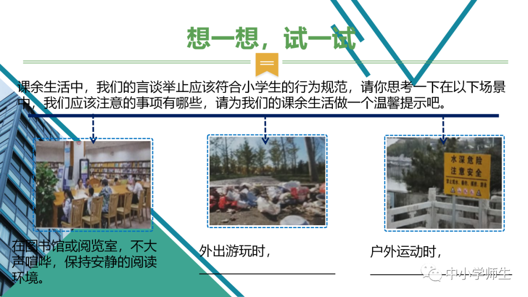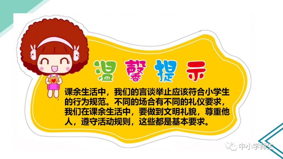过渡:我们的课余生活不仅要合理规划,还要注意自己的言谈举止符合小学生的行为规范。