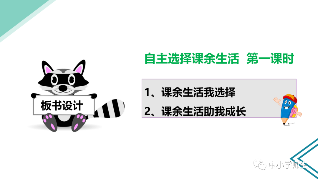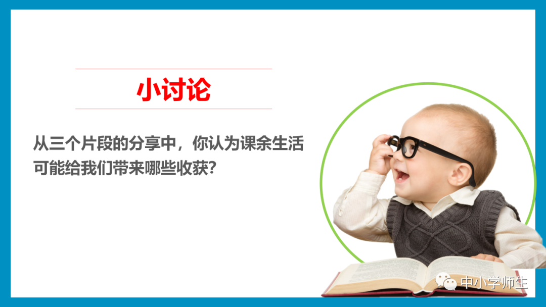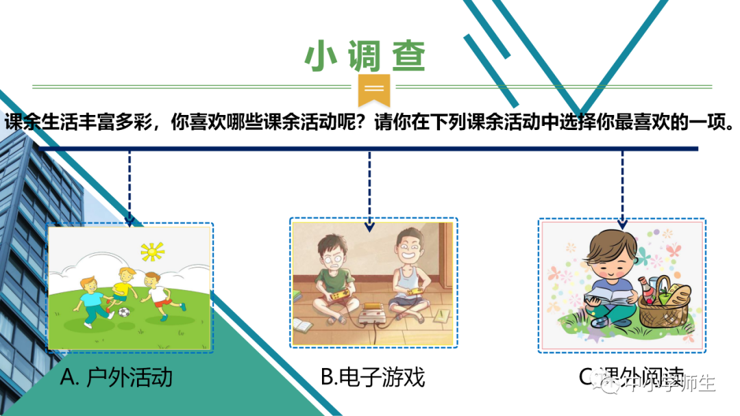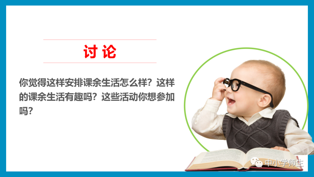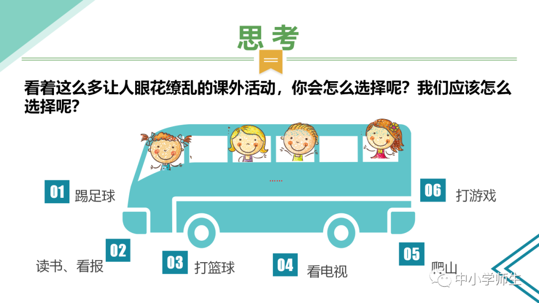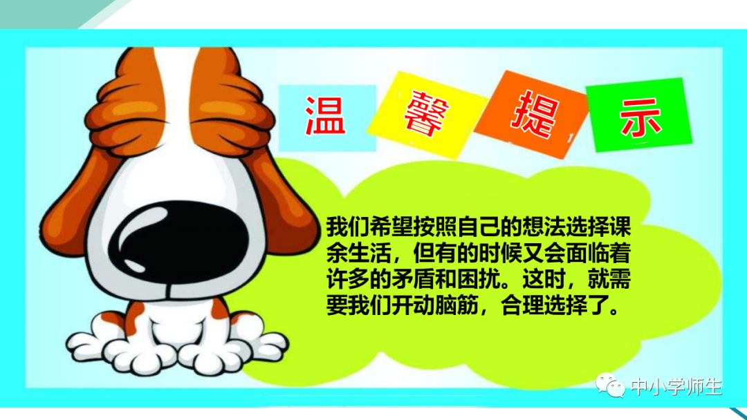 7.过渡:看着这么多让人眼花缭乱的课余生活,你会怎么选择?我们应该怎么选择呢?