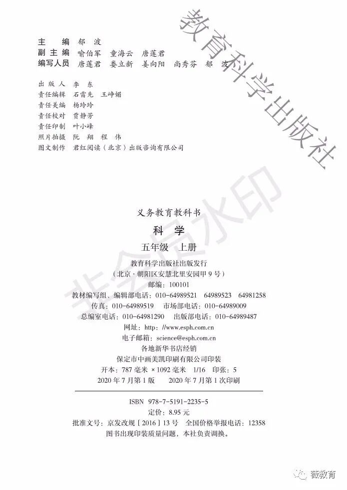为了方便大家使用新教材,今天,小编将最新教科版5年级《科学》上册电子课本送给大家,希望对老师们备课和孩子们的学习有帮助!【建议老师转发到班级群】