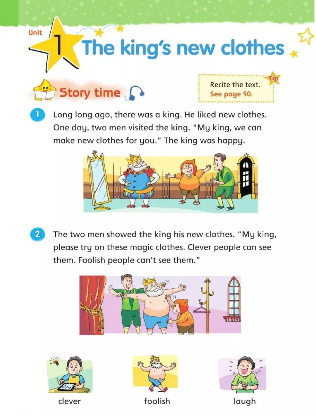 “我的国王,请试穿下这些有魔力的衣服。聪明的人能看到它们。愚蠢的人看不到它们。”