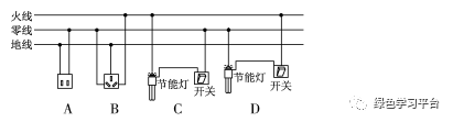 5.在家庭电路中,插座、螺口节能灯和开关的连接正确的是()