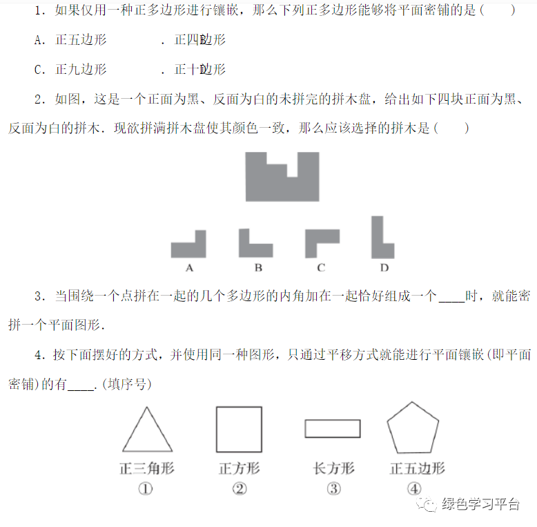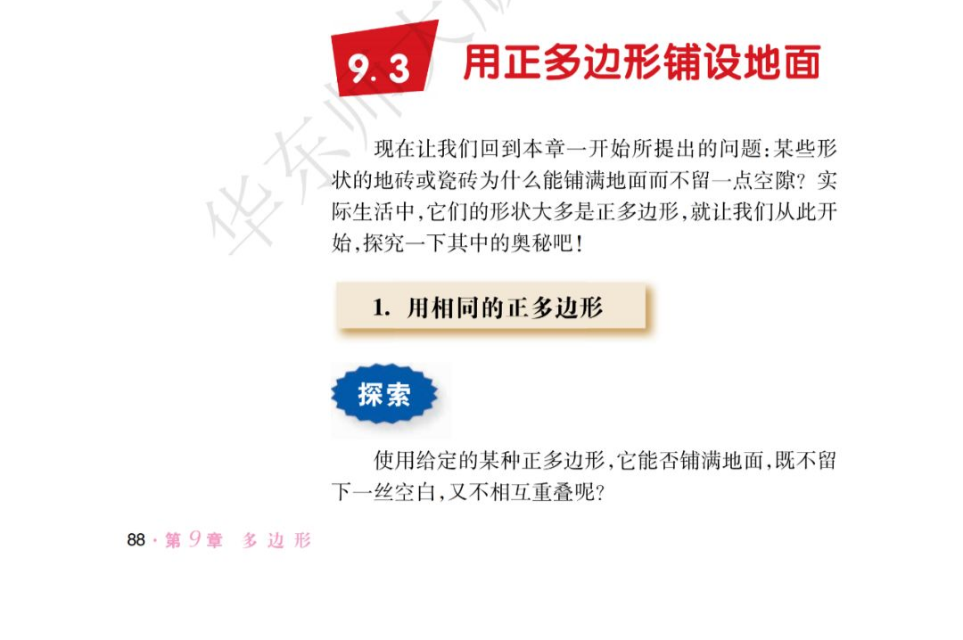 华师大版数学七年级下册9.3.1《用相同的正多边形》(含教材|微课|课件|练习) 2021-06-08 16:02:49
