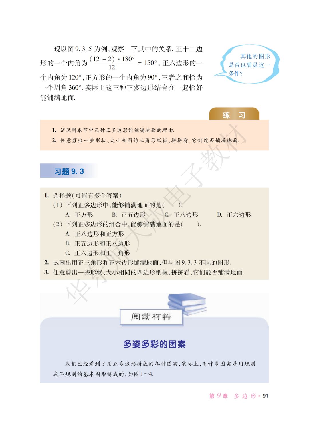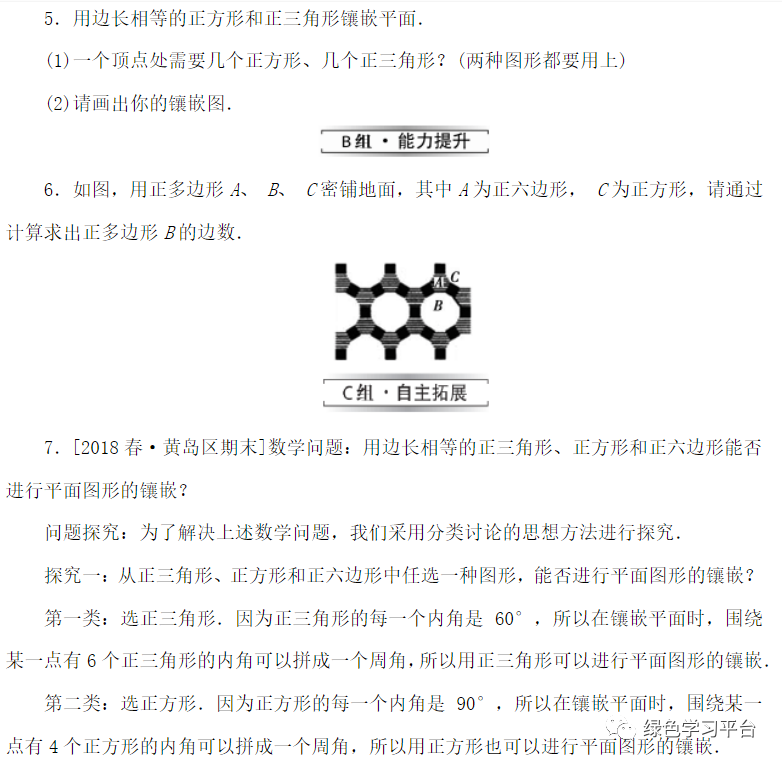 华师大版数学七年级下册9.3.2《用多种正多边形》(含教材|微课|课件|练习) 2021-06-09 14:16:28