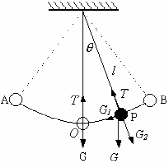 若摆球做垂直纸面的小角度摆动,则摆动圆弧的圆心在O处,故等效摆长为 ,周期 。