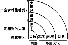 太阳外部结构:(内→外 )光球、色球和日冕三层(内→外 )亮度、密度由大→小