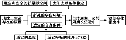自身条件 | 表面温度适宜 | 日地距离适中 | 只有地球有生命存在 |