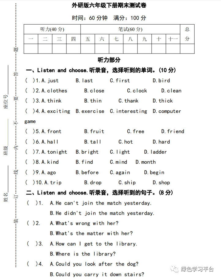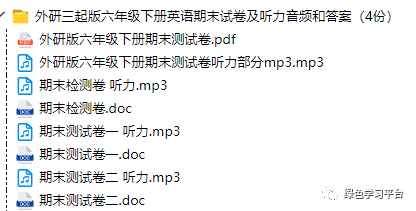 下载资料请拉到文末推荐资料外研版(3起)英语3-6年级下册电子课本教材外研版(3起)英语3-6年级下册【教学计划】外研版(3起)英语3-6年级下册课件教案外研版3起英语3-6年级下册【期中试卷】外研版(3起)英语3-6年级下册图文微课精讲【小升初】小学英语小升初复习资料汇总♬点击上方绿标听课文朗读怎么获取上述试卷及听力资料?▼下载方法(务必细看):关注微信公众订阅号【绿色学习平台】(ID:qqyu_520910),在公众号底部菜单中输入下面提示关键字,正常一分钟内即可下载。特别注明:1、如提取不了说明关键字输入错误或操作不当,可以留言等待处理。2、我们不做强制分享获取,但希望你获取资料后还能常来,能帮我们转发分享。3、来了就是朋友,多提意见和建议。 领取方法1 ▼第1步:扫码关注 绿色学习平台第2步:发送关键字【试卷04】4个字 领取方法2 ▼打不开百度网盘链接的地区可长按扫码直接进入下载电脑端下载网址http://jazpan.com/box/475.html▼(回复关键词位置如下图所示)图文来自网络,版权归原作者,如有不妥,告知即删点击阅读原文下载全册PPT课件动画教案习题朗读试卷电子课本整套资料
