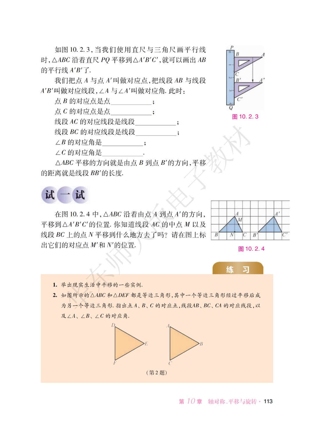 华师大版数学七年级下册10.2.1《图形的平移》(含教材|微课|课件|练习) 2021-06-14 16:01:14