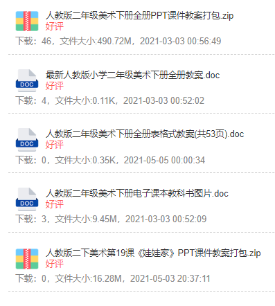 语文数学英语物理化学生物史地政治道德与法治美术音乐科学全部课程 ↓小学美术资料汇总(微课+课件+教案)全册同步微课视频人教版二年级美术下册电子课本第1课《纸片插接》第2课《 重重叠叠》第3课《点线面》第4课《漂亮的包装纸》第5课《五味瓶》第6课《得奖啦》第7课《 美丽孔雀》第8课《叶子上的小“血管”》第9课《漂亮的花边》第10课《脚印的联想》第11课《蔬果变变变》第12课《小鸟的家》第13课《动物的故事》第14课《友谊卡》第15课《家乡变了样》第16课《我的老师》第17课《会爬的玩具》第18课《电脑美术-花边》第19课《娃娃家》第20课《 五彩缤纷的生活》人教版小学美术2年级全12册教案小学音乐(微课+课件+教案+知识点)汇总小学科学(微课+课件+教案+知识点)汇总小学语文汇总(微课+课件+教案+练习试卷)小学数学资料汇总(微课+课件+教案+练习题)小学英语(微课+课件+教案+练习题+音像)汇总▼全册精品表格式教案 备课时间 月 日授课时间 月 日 星期 第 节教材简析纸片插接 教学目标1、通过课前的调查和学习,引导学生了解插接这种纸艺形式,产生对插接艺术的兴趣;了解插接的结构及基本的变化手段,尝试着设计并制作一组插接纸艺作品。2、通过设计并制作一组插接纸艺作品的活动,培养学生的感受、合作、探究能力、操作能力和创造意识及创新精神,发展个性。3、追求行为目标的情感驱动力,通过本次活动,使学生在与同学共同设计、共同制作的过程中,加深师生之间、学生之间的感情,留下自己在艺术道路中成长的足迹。教学重、难点 1、单元形的设计要简单易制、方便复制。2、启发学生运用改变接缝切口的长度、方向及在基本形上的位置的方法使作品产生出多变的空间构成关系。3、掌握机械线锯的使用方法。并在制作中注意安全,学会自我保教具 剪刀、各色卡纸、吹塑纸、美工刀、手套。 第一次备课第二次复备 教学设计 活动一:学生汇报自己通过课前研究性学习,了解到的关于纸艺插接的知识。学生交流完毕,教师将学生收集到的信息进行归类和总结。出示课题:插接活动二:通过实物投影仪展示大师作品,请学生概括总结插接作品有哪些种类。①普通形的插接:单元形相邻两片各切割一半插缝。(教师提醒学生:断面形状又有放射形和平行形,后者易变形,故要求面材有一定厚度 或使造型有较大支撑面。)②靠榫眼、扣接的单元形的插接,形式更加灵活。③由曲折的开形做插接。④由单位内空体做插接。我们今天就来尝试着制作插接中最简单的——普通单元形的插接。活动三:实物投影仪出示大家熟悉的雕塑“铁蝴蝶”的照片,引导学生回忆自己在看到这组雕塑时所产生的感受,理解作品由于造型形式所产生的张力和所蕴含的奔放的情感。利用实物投影仪的放大功能展示“铁蝴蝶”雕塑的一个单元形象,请学生每人用大红色铜版纸来“克隆”一个3*4CM的“铁蝴蝶”形象。(学生运用剪刀、美工刀进行简单的形的模仿)做完后鼓励学生通过小组讨论、研究和实践,将本组内每个人做的蝴蝶个体在合适的地方切割开缝,插接成一组“铁蝴蝶”雕塑。(活动目的:让学生在运用易切割的铜版纸进行对简单形的模仿,并自己找出成组造型的插接方法的过程中,找出单元形在插接过程中向各个方向延伸时的插接规律和方法。)请学生谈一谈自己组是怎样如何找到最适宜切割开缝的地方成功的实施插接的,也可以帮失败的组找一找问题出在哪儿。教师总结:实际上所有的普通单元形的插接都是先设计出一个单元形,进行复制,并裁割出有规律的表面切缝,再进行变换平面角度的对插,向空间各个方向延伸。这样,一个视觉上的立体形态就显现出来了。活动四:小组通过讨论,设计一个简单易复制的单元形的形象,由学有余力的学生用卡纸或吹塑纸进行制作并找出合适的位置裁出接缝,做好后组里其他同学进行复制。小组进行插接造型。先做完的学生可以在老师的指导下尝试着用电动线锯来用KT板切割一个单元形象。活动五: 板书设计教学反思课时教案 备课时间 月 日授课时间 月 日 星期 第 节教材简析重叠的形状 教学目标 让学生对生活中很普遍的、合理存在的遮挡现象有初步的认识,促进学生有意识的注意观察和表现遮挡关系,并通过自己动手制作的过程进一步增强理解。通过绘制过程渗透三度空间概念,培养和锻炼动手动脑的能力。教学重、难点 遮挡关系绘制过程中出现的重叠表现问题教具 实物投影仪、教材、范图。 第一次备课第二次复备教学设计活动一:引导学生观察前后景物的遮挡关系,导入新课。在生活中我们也常常遇到这种现象:1、一盘水果(端出实物)2、教师做站立在讲台后边的动作3、请一个小朋友挡在教师的前边站立活动二:我们把这种现象叫做“遮挡现象”,如果我把它们画成这样就不对了,(出示图片)因为没有了遮挡现象,是不真实的,必须画成下边图中的样子,(出示图片2),出现了遮挡关系也就真实了。实物投影仪演示:为了表现遮挡关系,就要先把前边的东西画好,后边的东西露出多少画多少,被遮挡的部分不画,画面就正确了。画面上有前有后的东西,前边的东西在较低位置上,后边的东西在画面较高位置上,才能看出远近关系。活动三:学生作业,教师巡回辅导画出或用纸剪出动物、人物,进行重叠排列。也可画叠罗