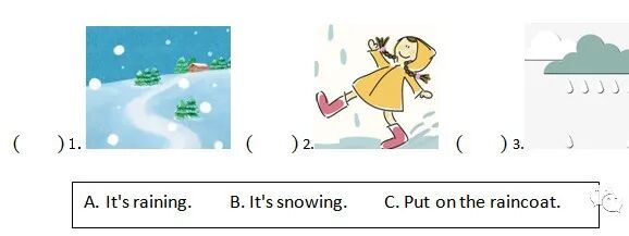 三、1.Is raining 2. take raincoat 3. put on