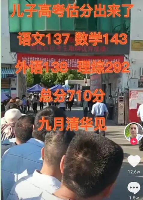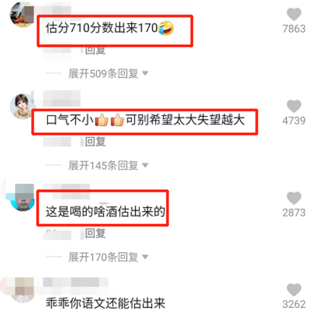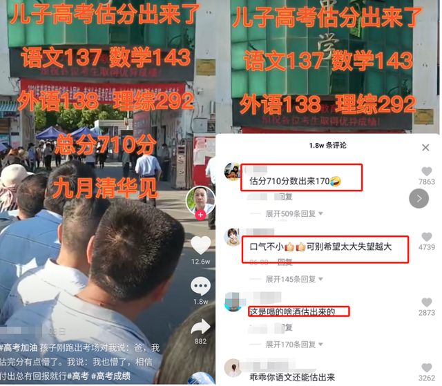 有一位家长在短视频平台走红了起来,起因是因为孩子的高考估分。高考估分是一件很常见的事情,不少家长在考后与孩子核对答案,以便有个心理准备,为未来做打算。这位家长也不例外。孩子考后立马就估算了总分,得出结果710分,这个成绩可以说是少见的高分了,也难怪作为家长可以在说出“9月清华见”这种话。不过开心没多久,这位家长就被泼了冷水,不少人表示高兴得太早了,现在估分710,成绩一出170……这类言论层出不穷,可以是给作为家长造成了不小打击,不少人还等着放榜看她校花,结果让人大吃一惊。