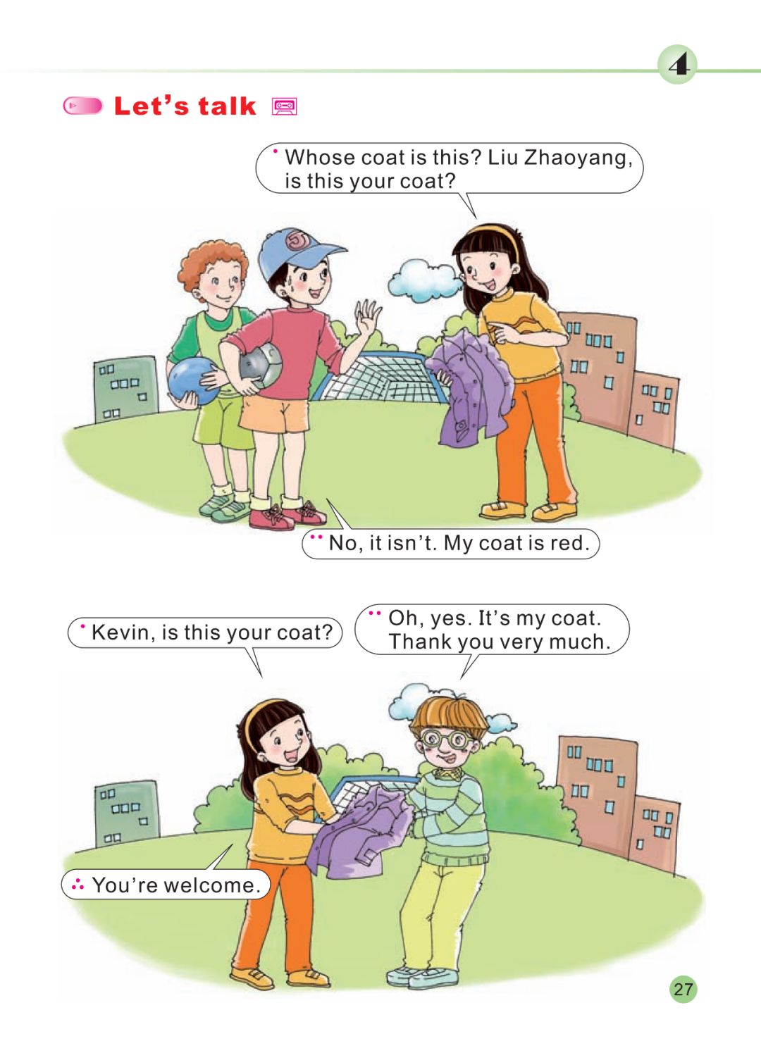 Liu Zhaoyang, is this your coat?No, it isn’t. My coat is red.Kevin, is this your coat?
