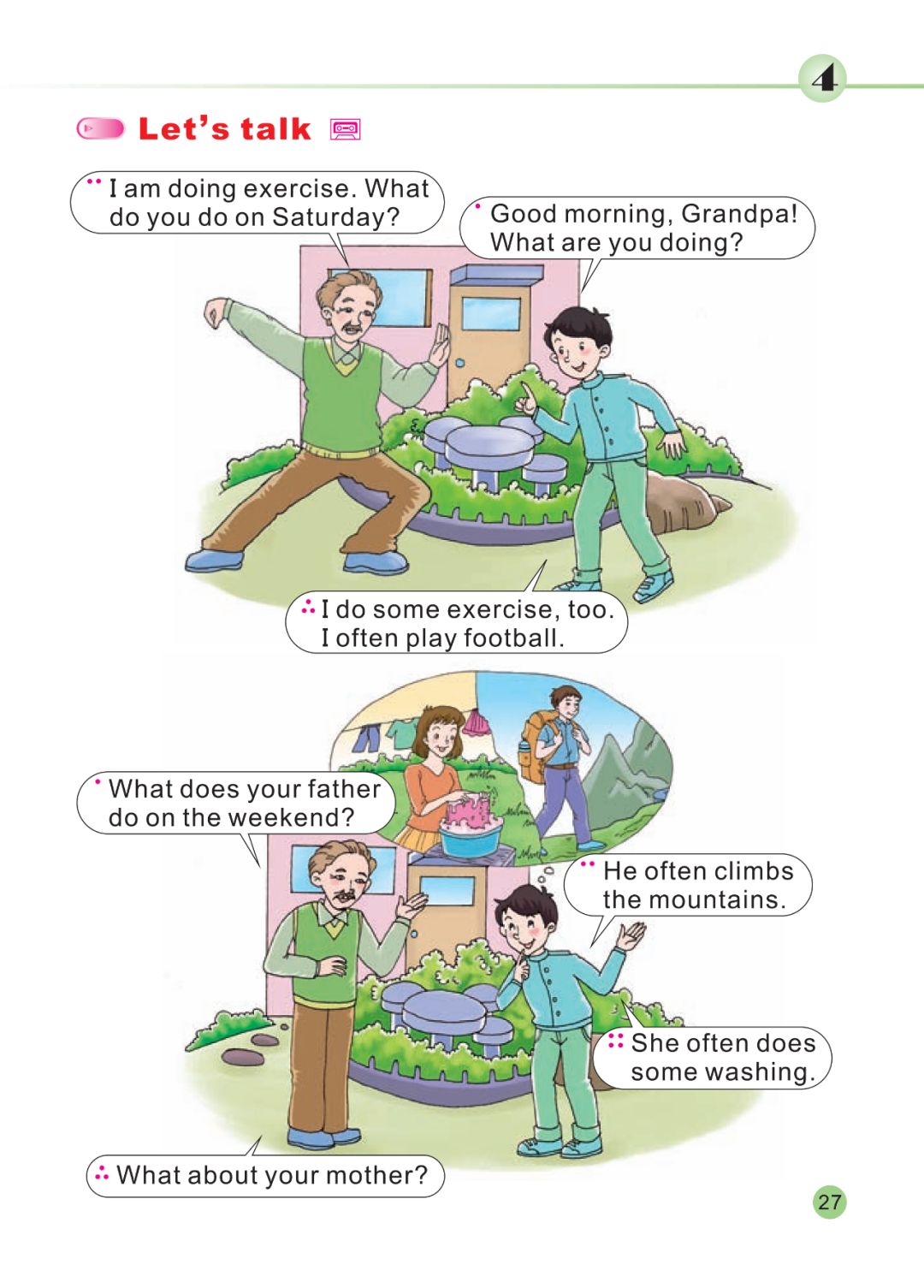 What do you do on Saturday?He often climbs the mountains.She often does some washing.