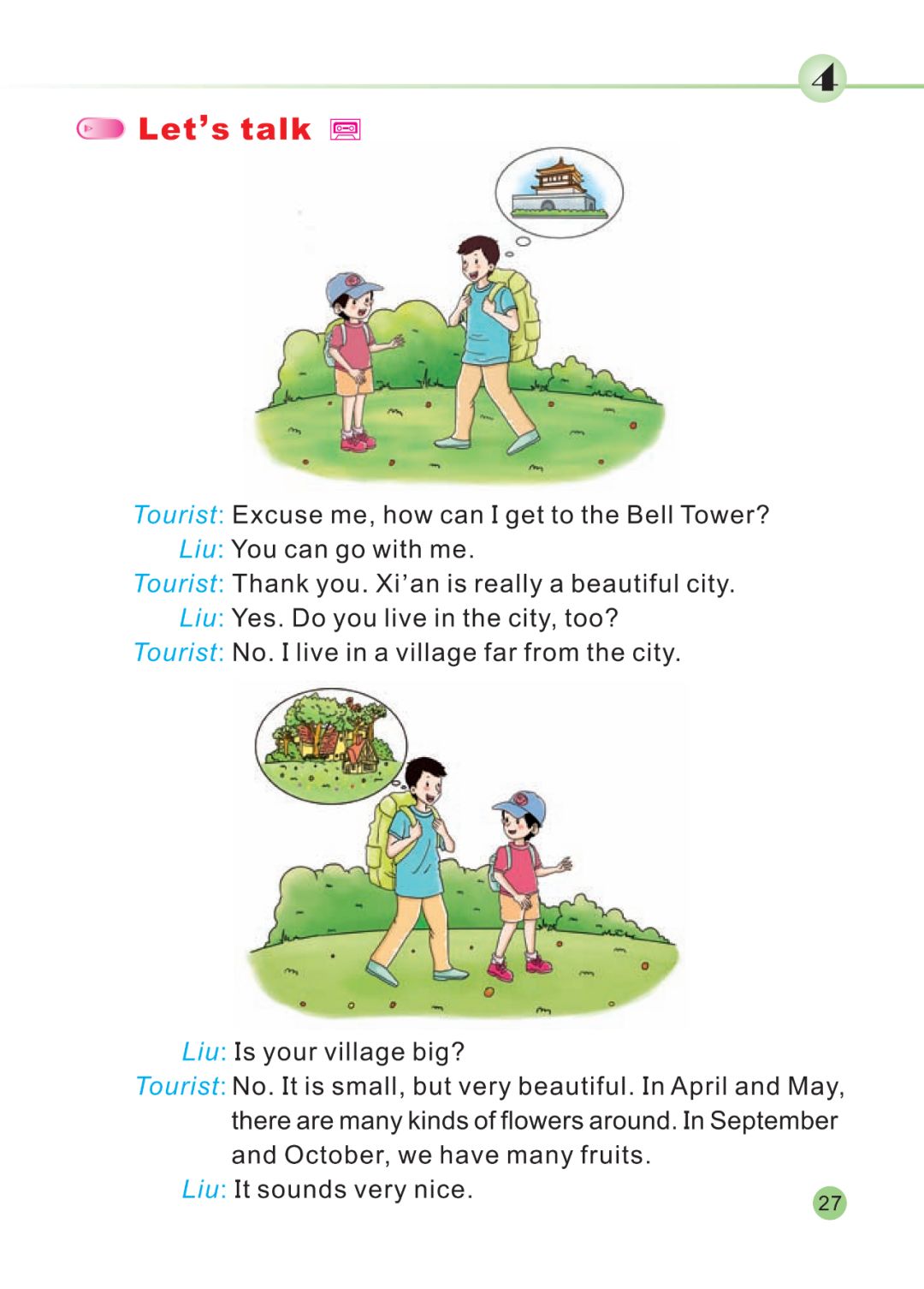 how can I get to the Bell Tower?Xi'an is really a beautiful city.Yes. Do you live in the city, too?I live in a village far from the city.No. It is small, but very beautiful.In April and May, there aremany kinds of flowers around.In September and October,