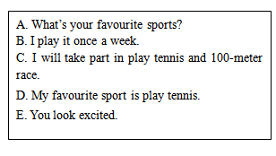 一、1. take part in 2. favourite sport 3. anyway 4. win the game 5. sports meeting