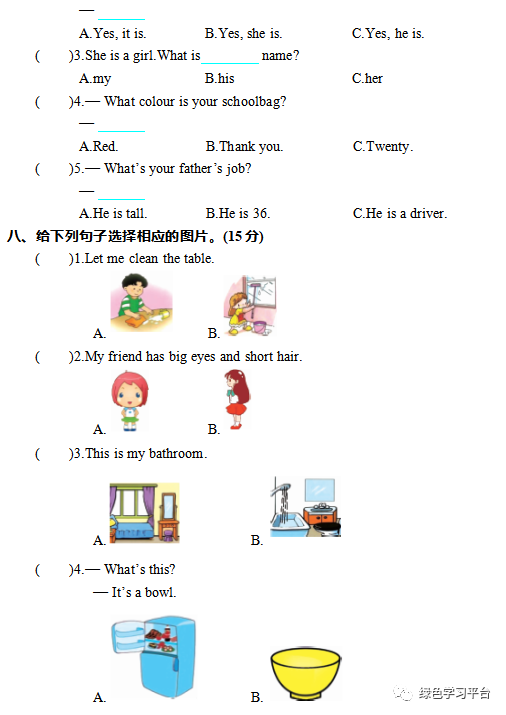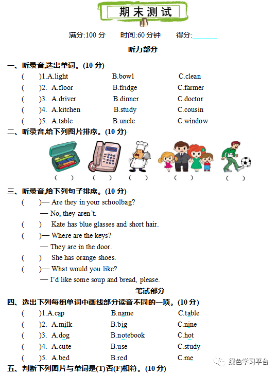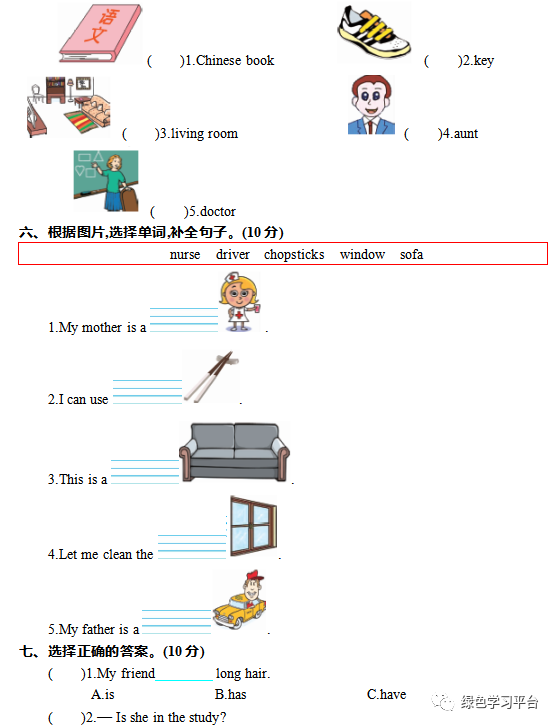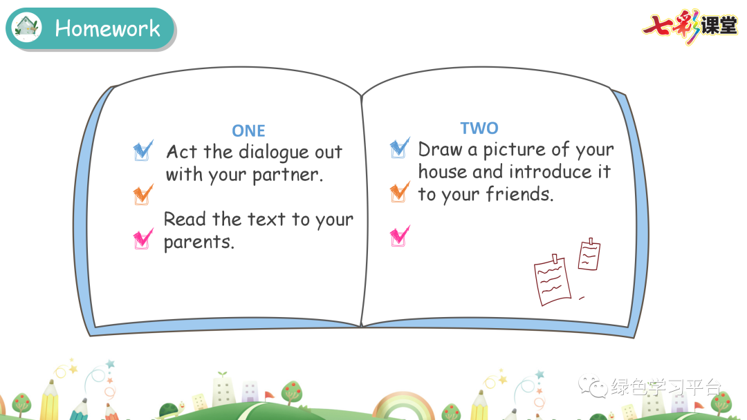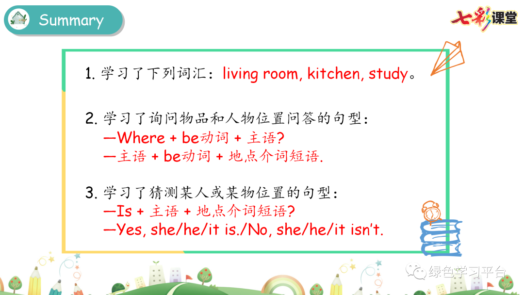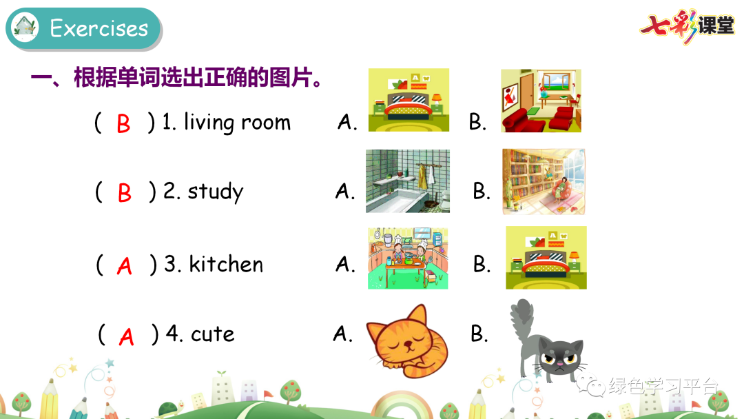 2. 能够听懂、会说以下词汇:living room, study, kitchen