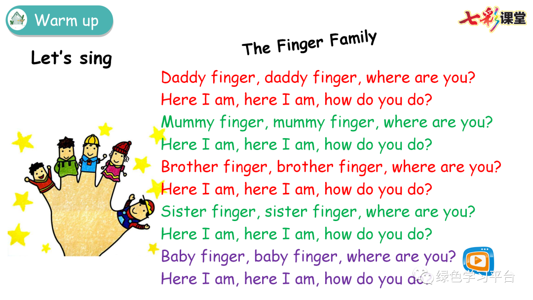 Teacher:Boys and girls, let’s listen to a song, finger family.