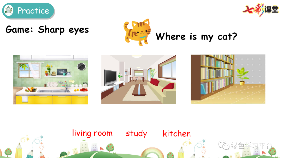 Teacher:Look at the pictures of the rooms. What is it? Say the word quickly.