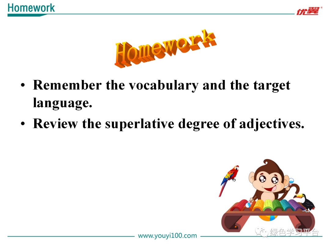 In this class, we reviewed “频度副词及短语”,Through some exercise, we learned to how to use them exactly. After school, I hope students can do more exercises to consolidate.