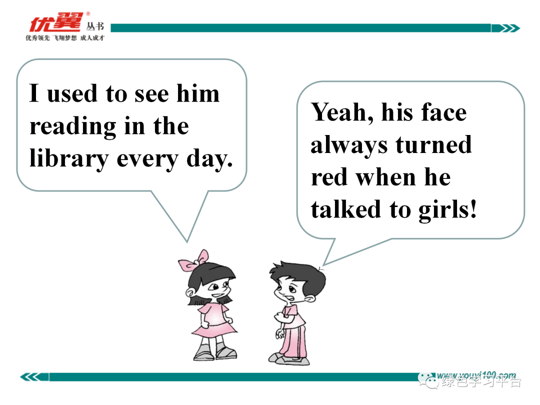 T:(To class) Good.He studies English by reading English books.That's a good way.(Then to another student)Now,what do you usually do when you study English?