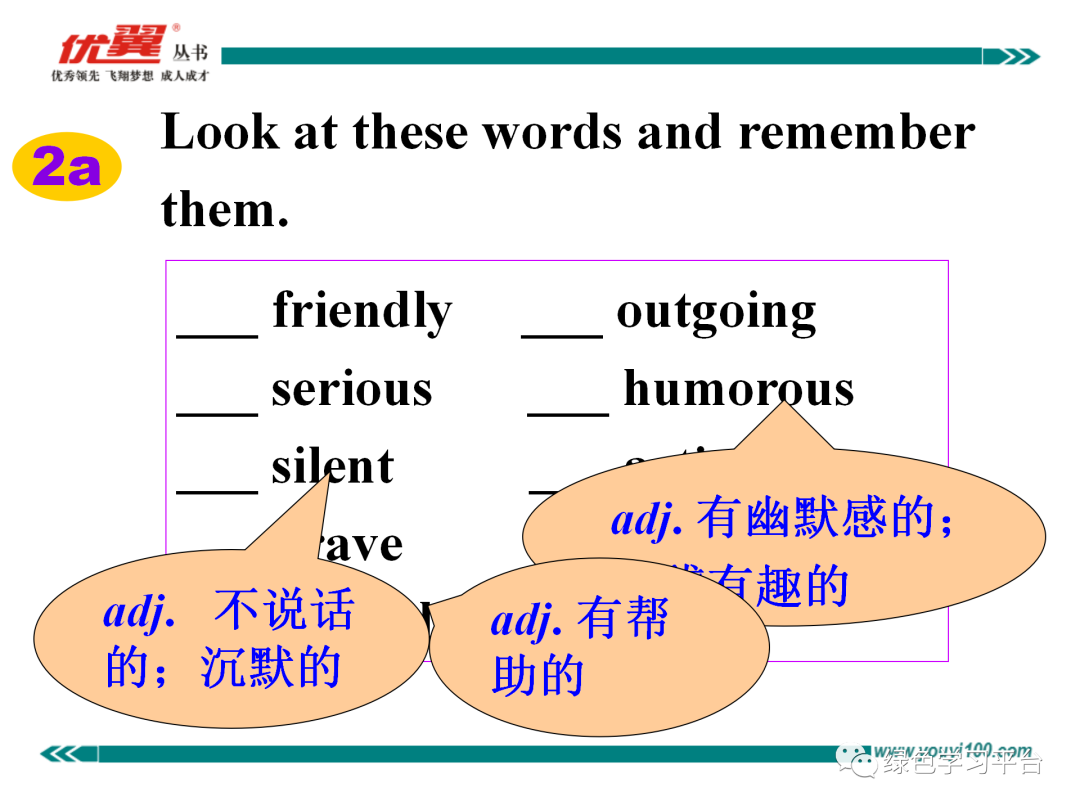 ①Use PPT or pictures for the students to learn the new words.Read the questions in 2a.