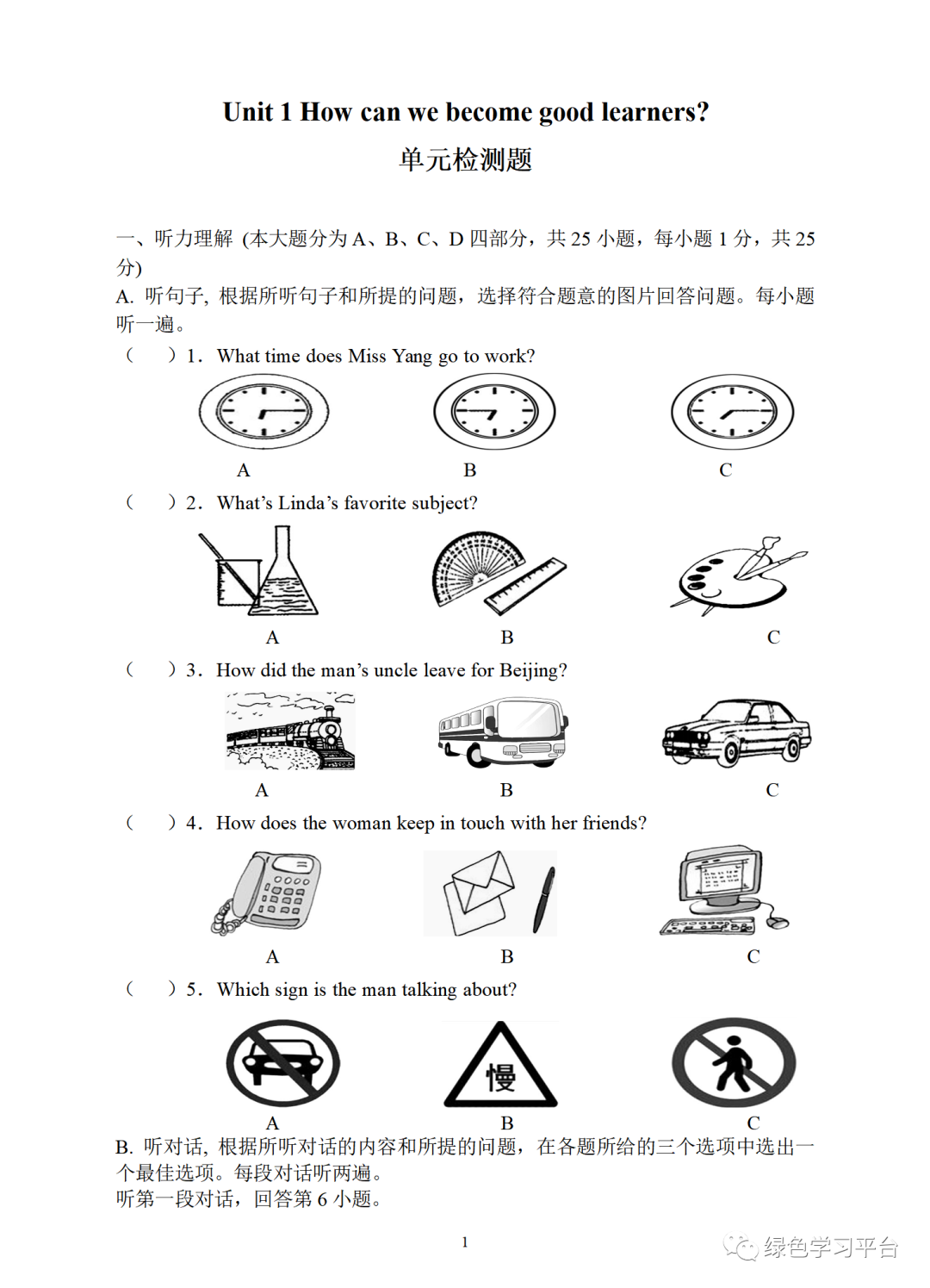 This is the first period of the unit.So it is important to get the students to know what they will learn in this unit.At the beginning the teacher should teach the main structure “by+doing”,and get the students to practice it in listening and speaking.Then we can come to reading practice.And new words and expressions are always main points in the first period of a unit.We'd better learn them while listening,speaking and reading.Do not separate them from the meaning group.
